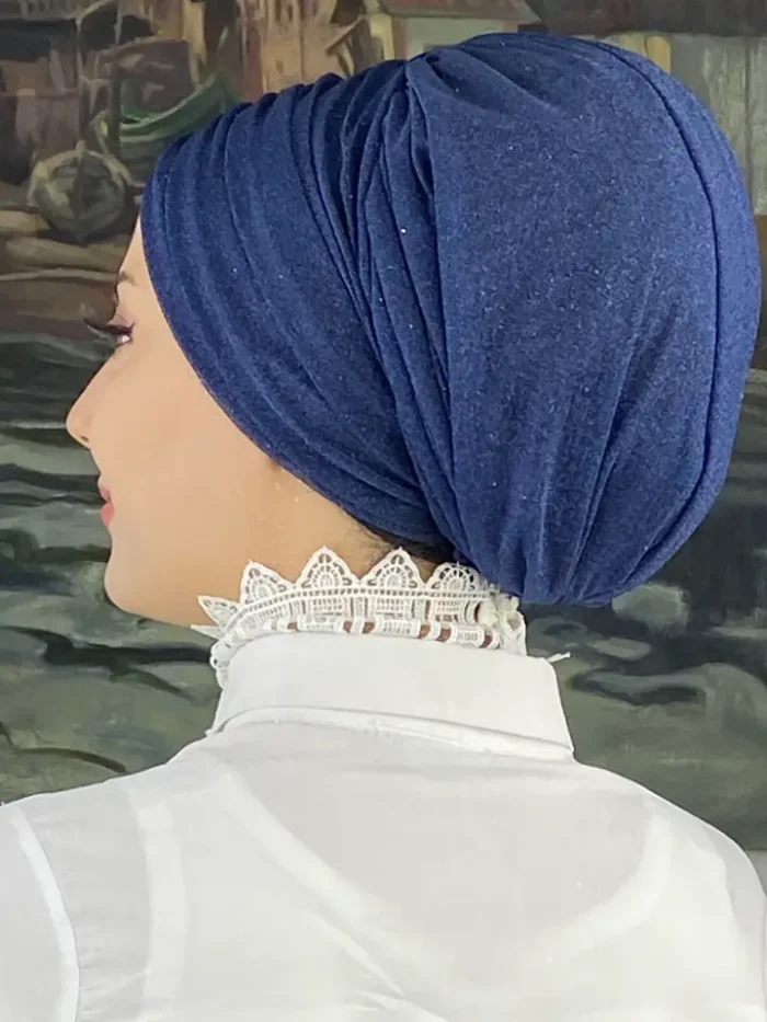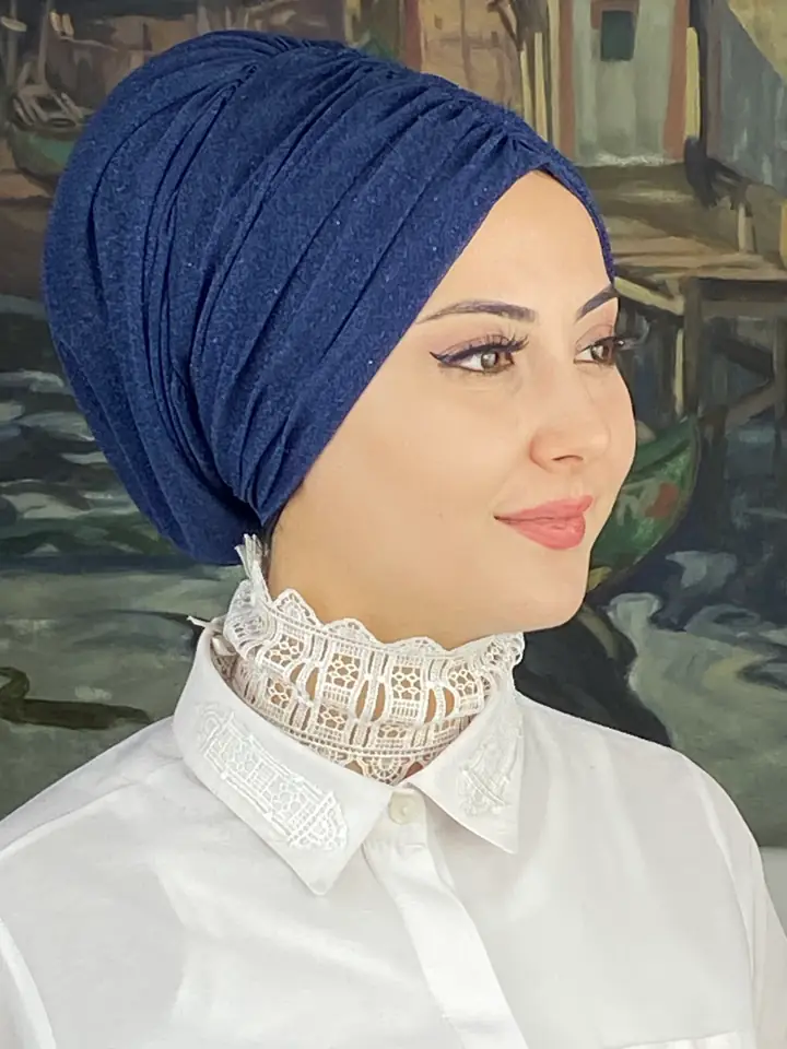 Trend Abiye Büzgülü Bone Şal – Koyu Lacivert