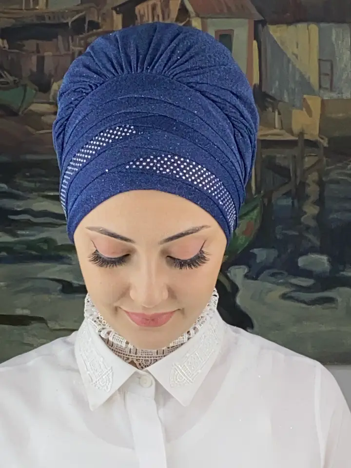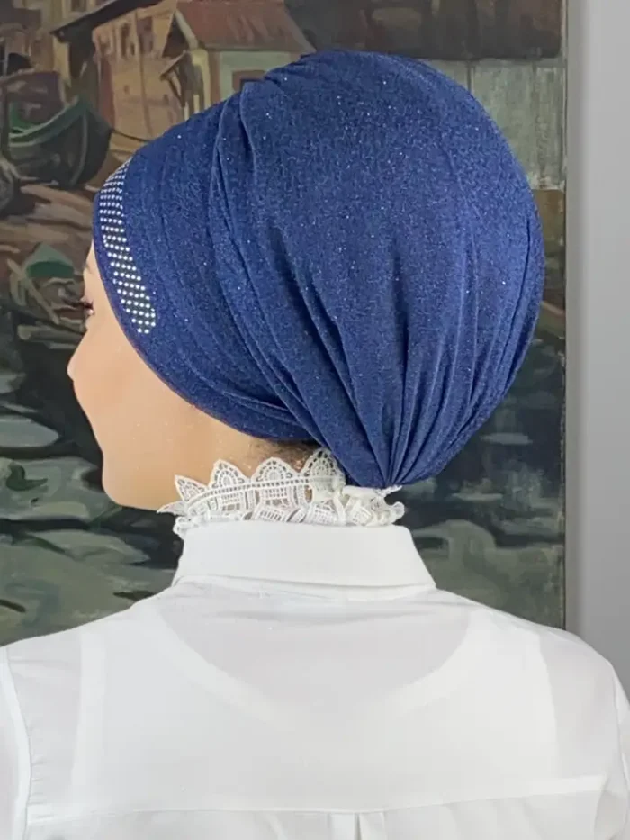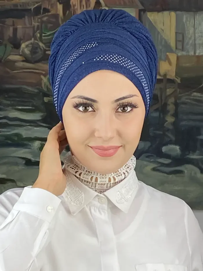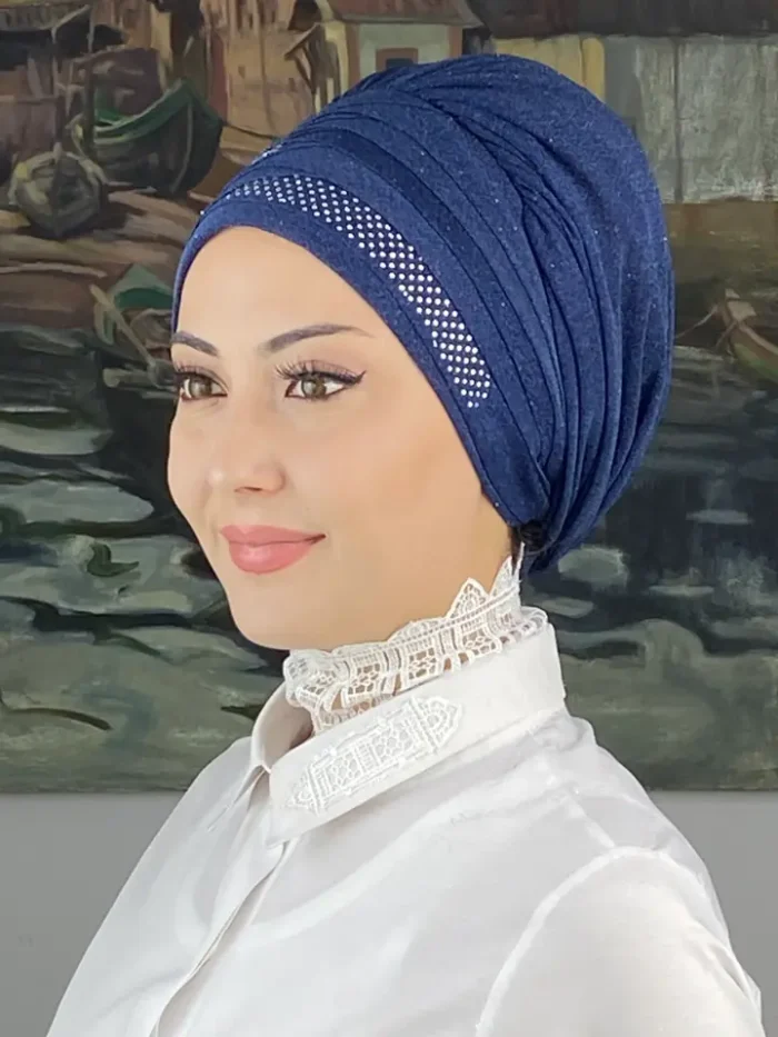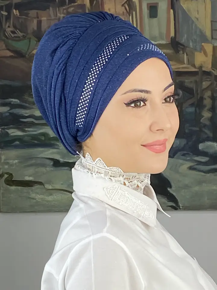 Koyu lacivert şıklığını yakalamak için Trend Çapraz Drapeli İkili Taşlı Bone Şal – Koyu Lacivert’i hemen sipariş edin!