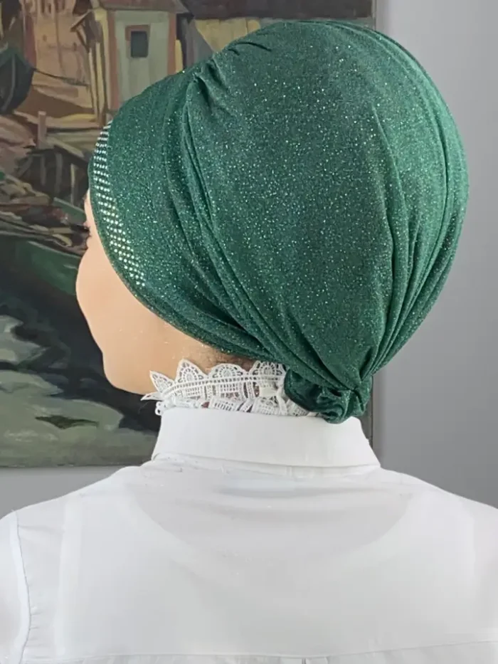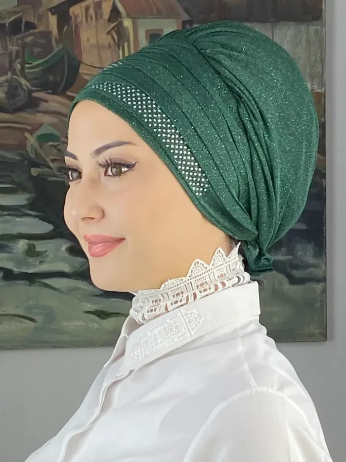 Trend Çapraz Drapeli İkili Taşlı Bone Şal – Zümrüt Yeşili 🌿