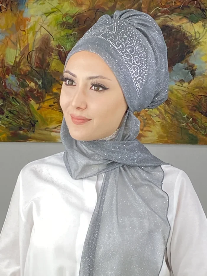 Özel günlerde tarzınızı ön plana çıkaracak Vintage Model Taşlı Abiye Atkılı Bone Şal – Gri ile abiye kombinlerinizi tamamlayın. Taş detayları ve sofistike gri tonu ile her kombinle uyum sağlar.