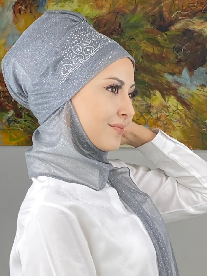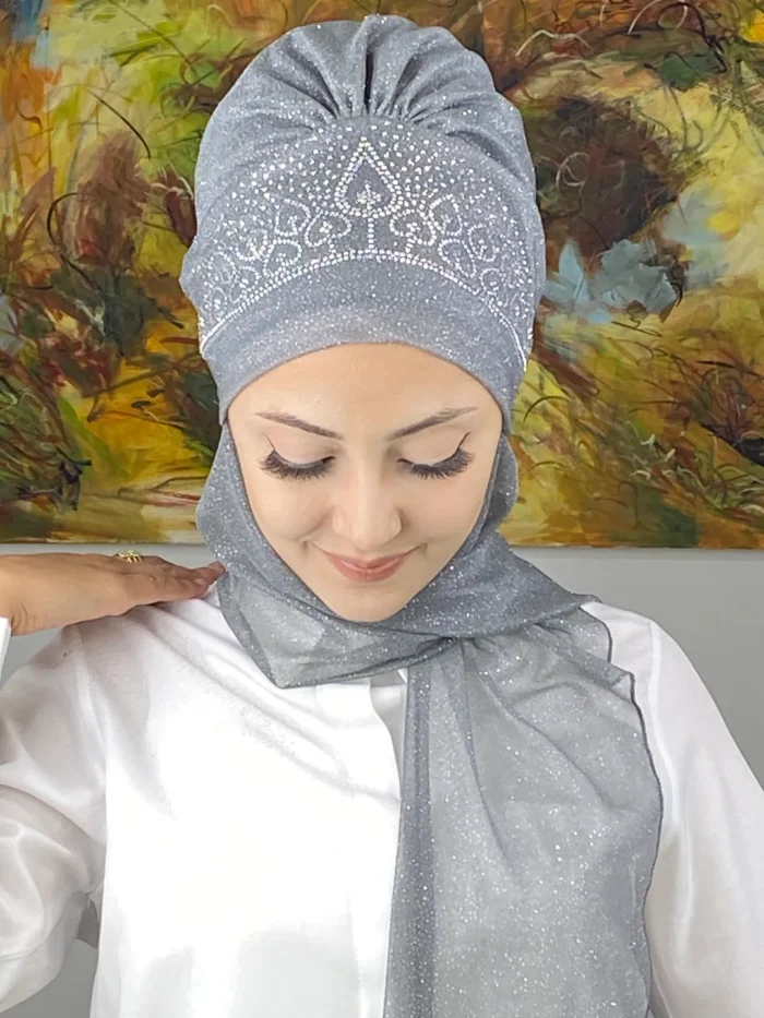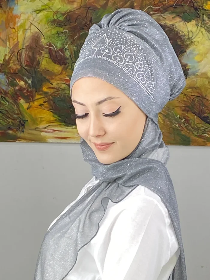 Vintage Model Taşlı Abiye Atkılı Bone Şal – Gri, davetlerde, nişan, düğün ve özel organizasyonlarda zarif görünümünüzü tamamlar. Her bakışta ışıldayan bir detay olarak fark yaratır.