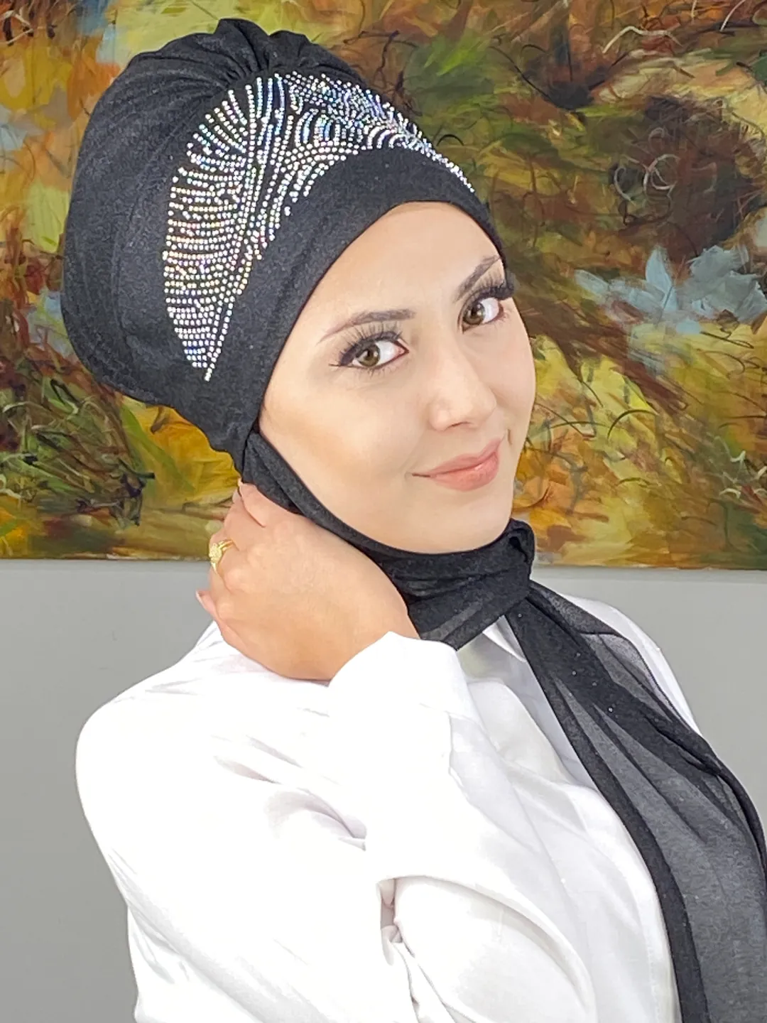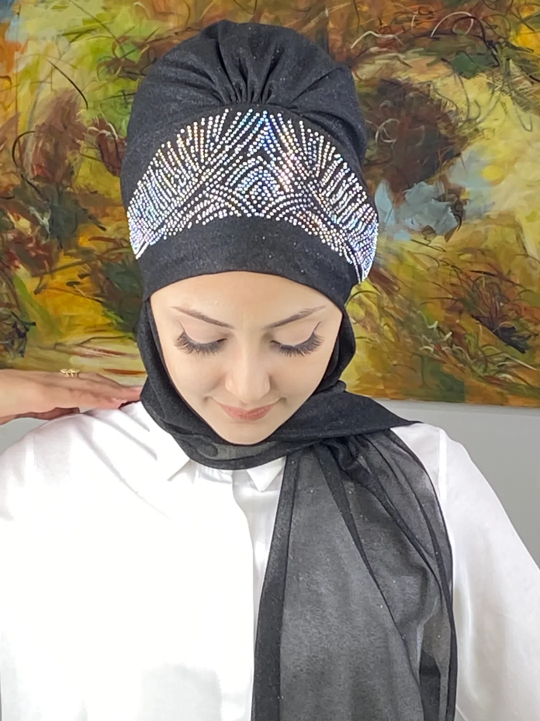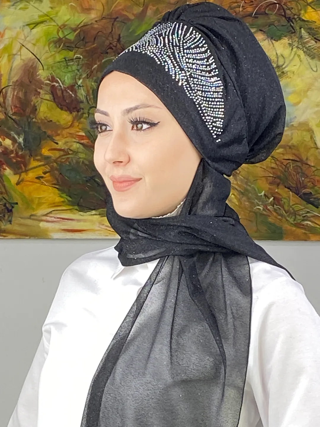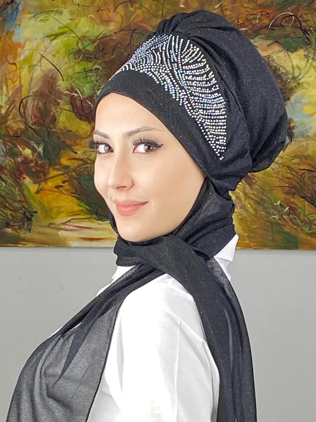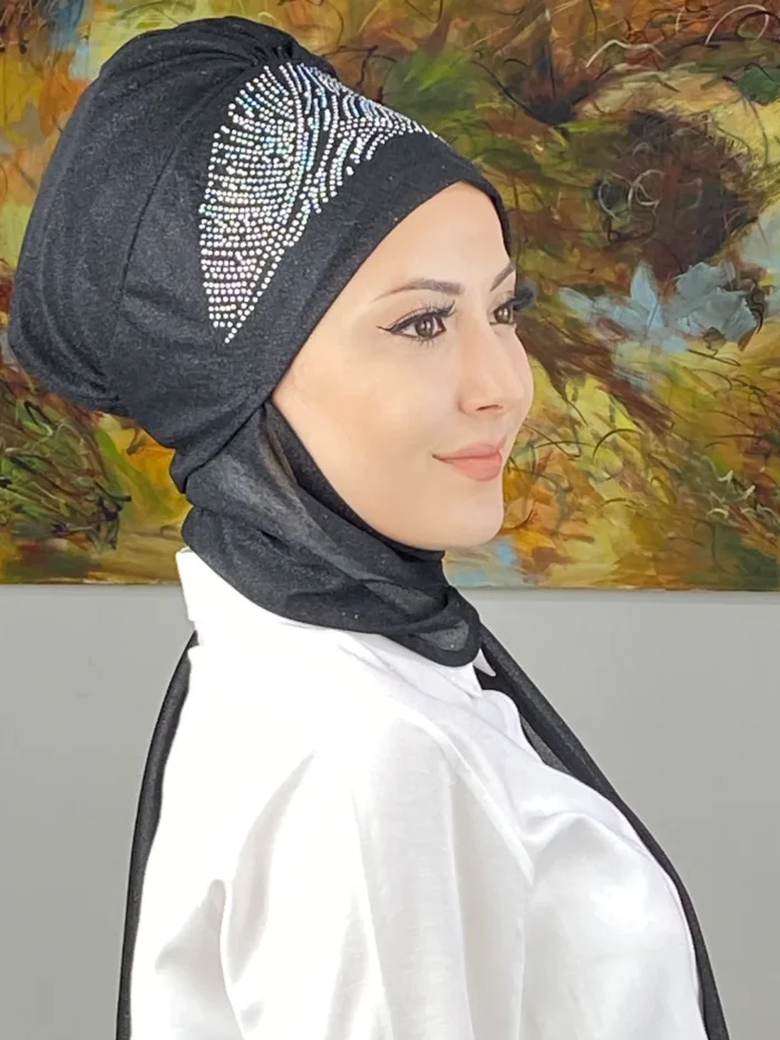 Koyu gri tonu, her abiye rengine uyum sağlarken kumaşın nefes alan yapısı konforu ön planda tutar. Bu bone, modern kadınların özel günlerde hem rahat hem göz alıcı hissetmesini sağlayacak şekilde tasarlanmıştır.
