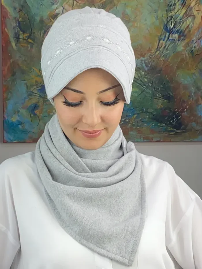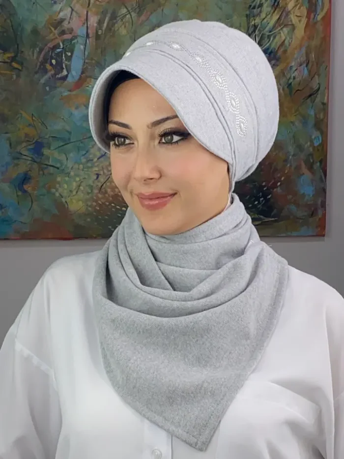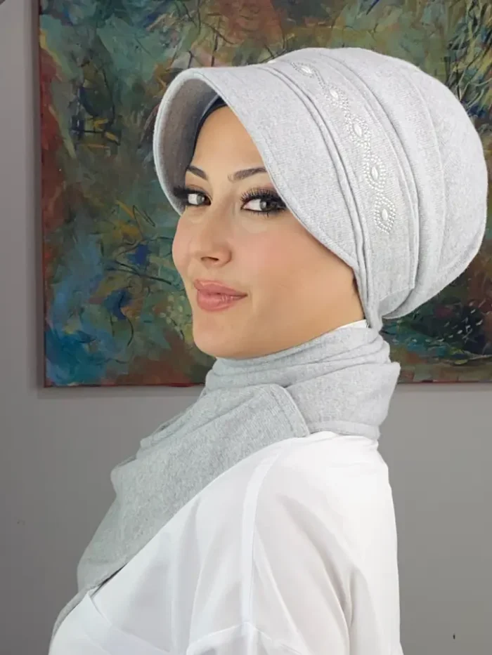 Gri rengi, her mevsim rahatlıkla kullanabileceğiniz, şıklığından ödün vermeyen bir ton. Ayrıca, ikili takım şapka tasarımı, farklı renk kombinasyonlarıyla birleştirilebilen bir parça olarak dolabınızda yerini alacak. Yılan arpa detaylarının minimal bir şekilde yerleştirildiği bu şapka, sadece şıklığı değil aynı zamanda kullanışlılığı da ön planda tutuyor.
